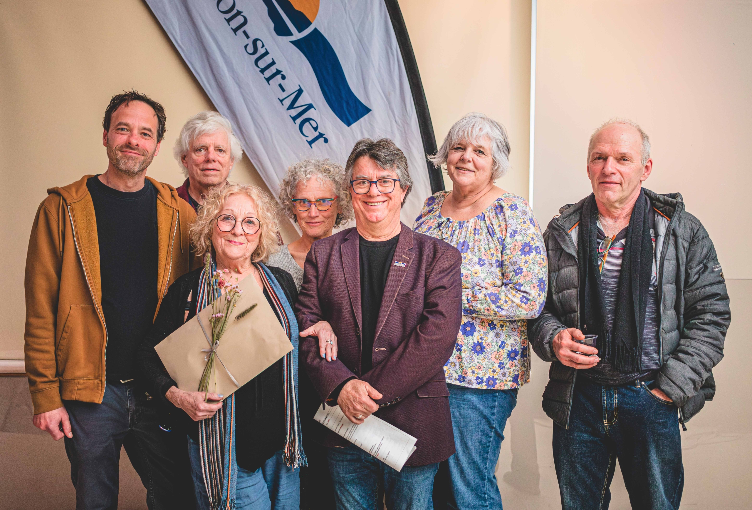 Régis Leblanc, conseiller municipal, a remis le prix Organisme culturel à Yanick Laporte, Robert Dubé, Myreille Allard, Aline Sérandour, Ann McBrearty et René Mathieu, du Théâtre Clan Destin.
