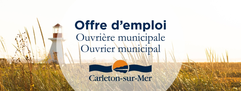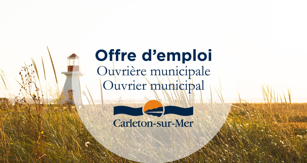 La Ville de Carleton-sur-Mer cherche des personnes autonomes et polyvalentes qui souhaitent travailler dehors pour occuper le poste d’ouvrier·ère municipal·e au camping de Carleton-sur-Mer. Ces personnes travailleront sous la supervision du coordonnateur des infrastructures récréotouristiques.