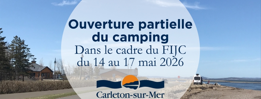 Dans le cadre du Festival international du journalisme, la Ville de Carleton-sur-Mer est heureuse d’annoncer un projet pilote pour 2026, soit l’ouverture partielle du camping pour la durée de l’événement, du 14 au 17 mai.